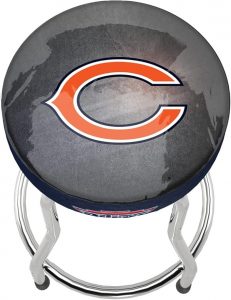 Comfortable seating is a must. Go for a leather sectional in dark navy or black, paired with recliners so everyone has the best seat on game day. Add a few Chicago Bears throw blankets and logo pillows for extra comfort. A reclaimed wood coffee table gives the room that rugged, football feel.