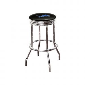 The Furniture King Bar Stool 24″ Tall Backless Chrome Metal Stool Featuring Your Favorite Football Team Logo on a Colored Vinyl Swivel Seat Cushion Lions on Black