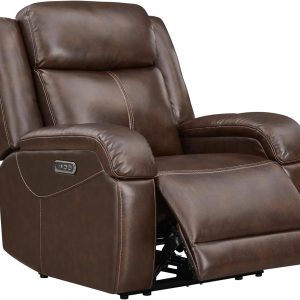 Watson & Whitely Genuine Leather Power Recliner Chairs for Adults, Wall Hugger RV Recliner with Power Headrest & Charging Ports, Electric Recliner Sofa Chair for Living Room, Dark BrownMCB-