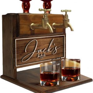 Personalized Whiskey Dispenser Liquor For Home Bar Engraved Wooden Barrel Head Liquor Dispenser Whiskey Decanter Set for Men Husband Boyfriend Christmas Anniversary Birthday (Double Faucets)