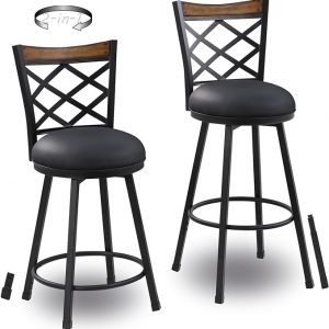Swivel Bar Stools Set of 2, 24/29 Inch Adjustable Seat Height Bar Stool with Back (Black)