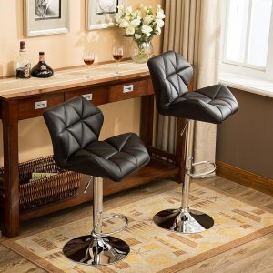 Roundhill Furniture Glasgow Contemporary Tufted Adjustable Height Hydraulic Black Bar Stools, Set of 2,
