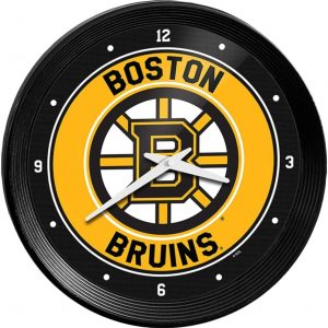 The Fan-Brand NHL Boston Bruins: Ribbed Frame Wall Clock – Sports Team Bar Sign Décor – Home Man Cave