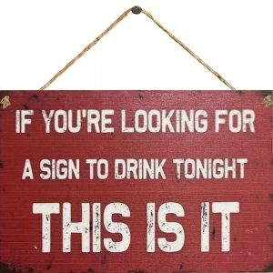 Vintage ‘If You’re Looking for a Drink Tonight, This Is It’ Wooden Sign with Hanging Rope –