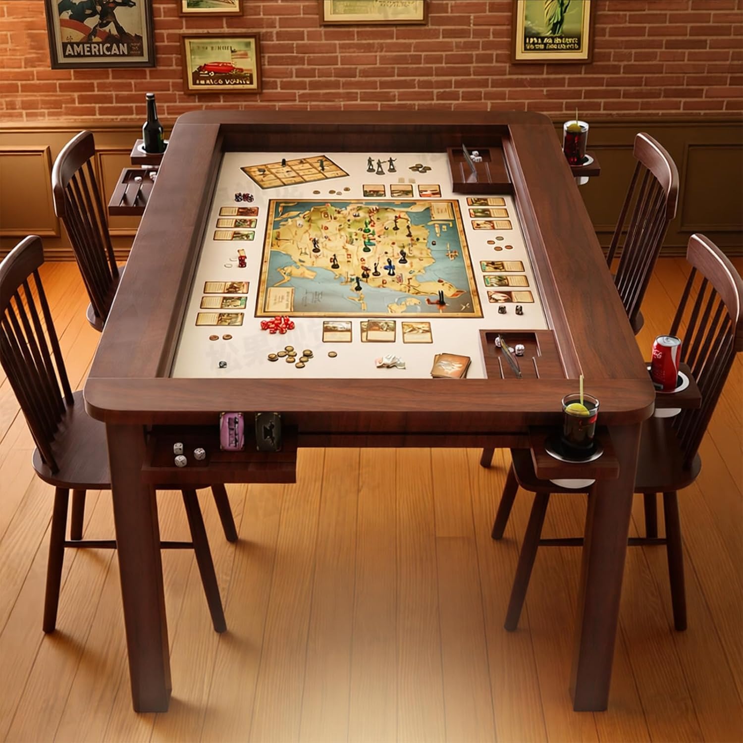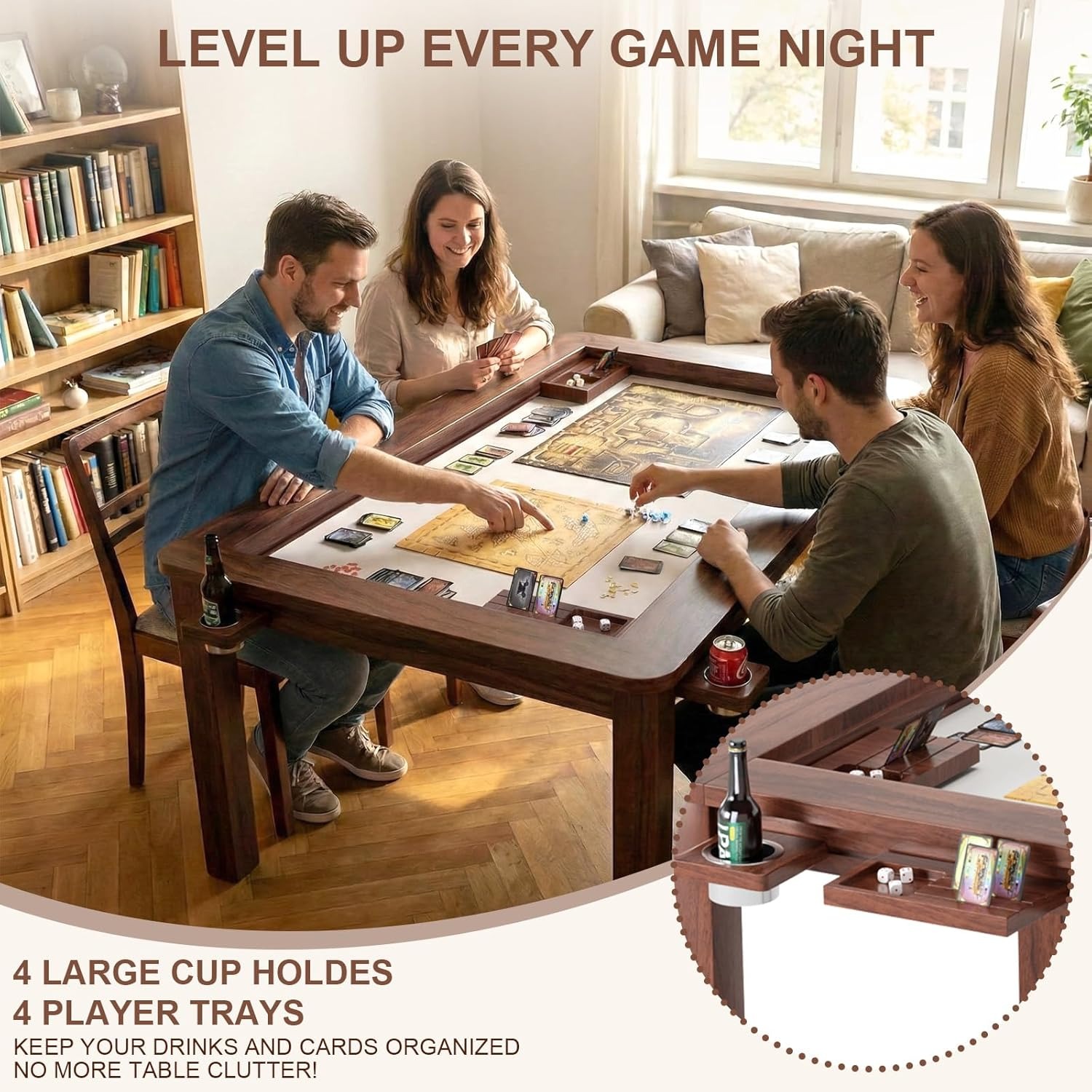 - 【Fully Modular System】: The solid wood base includes 4 sliding trays and 4 cup holders with smooth inner/outer tracks, providing dedicated storage for dice, cards, craft supplies, or snacks. The exclusive tabletop organizer ensures effortless setup and storage.