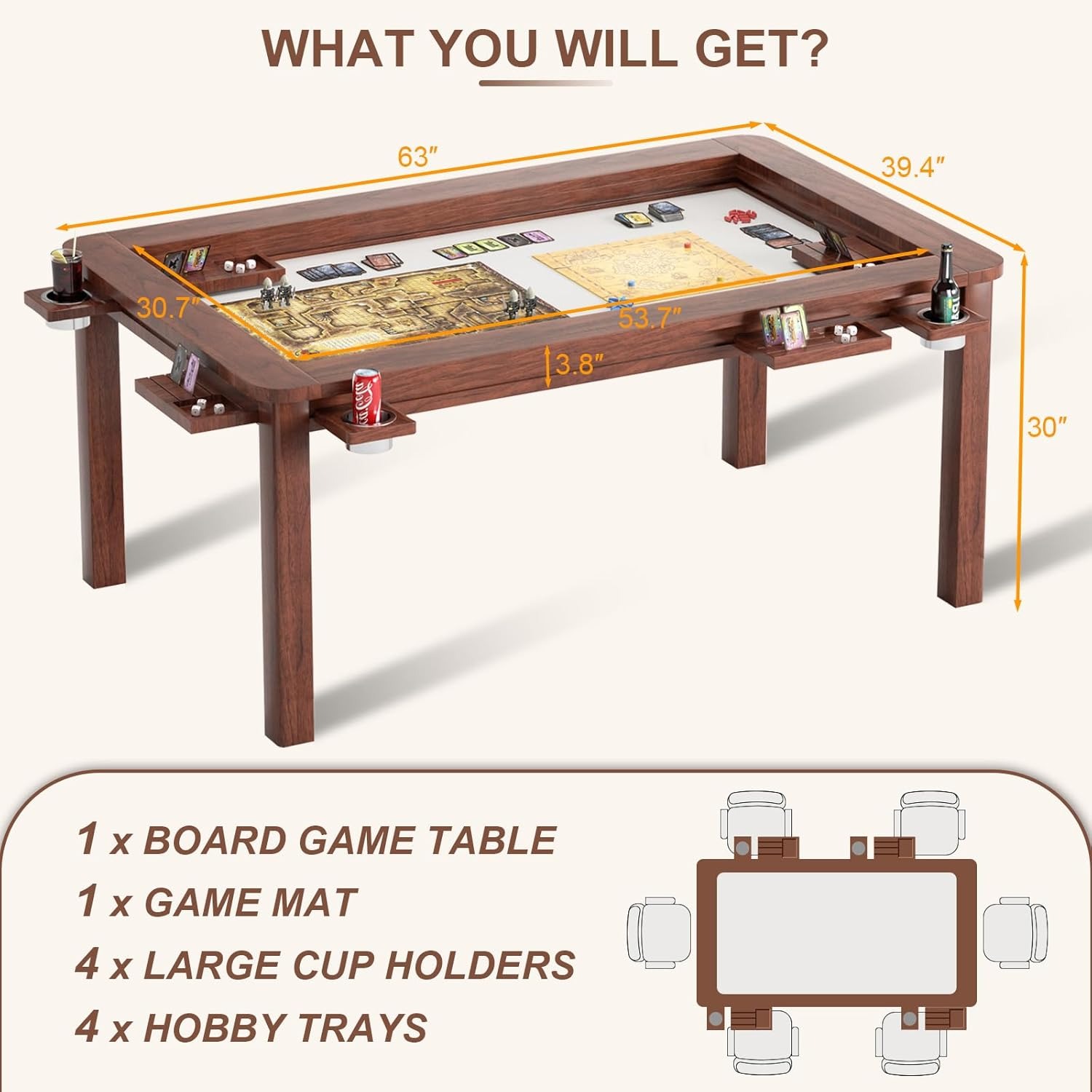 - 【Hardcore Gamer Design—Spacious & Enduring Comfort】: The generous 53.7“ × 30.7” play area accommodates large-scale campaigns, map layouts, puzzle games, or Catan expansions. Comfortably seats 4-6 players, making it perfect for family gatherings, friend meetups, and game nights.