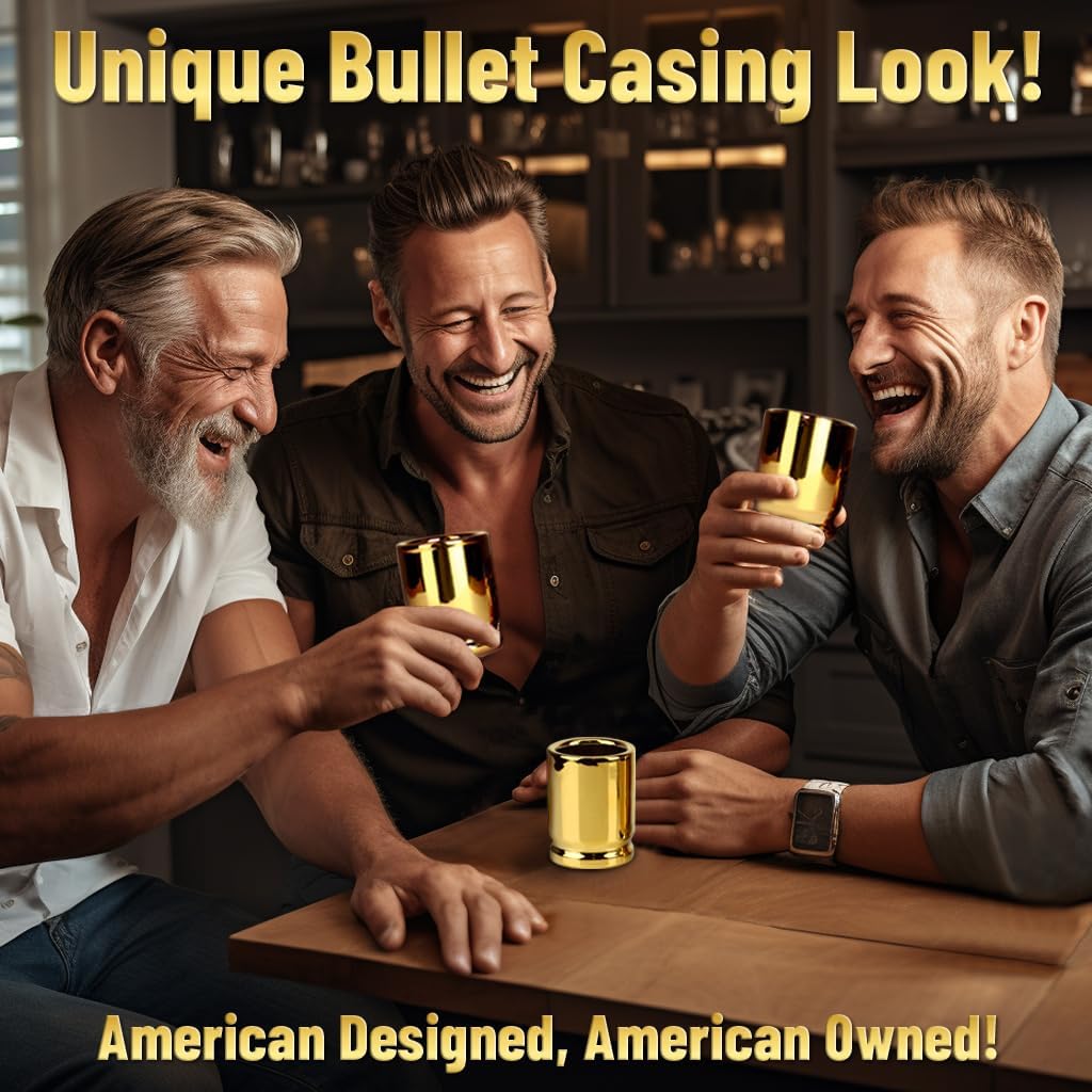 - GAG GIFTS FOR ADULTS: On the hunt for unique gifts for men, these are perfect for the special men in your life – dad, brother, husband, boyfriend, or the dedicated personnel in police, fire, and military services. These 50 caliber shot glasses make fantastic groomsmen gifts, hunting gifts, whiskey gifts, and novelty gifts for men. They’re funny gifts and the perfect Christmas white elephant gift for the man who has everything.