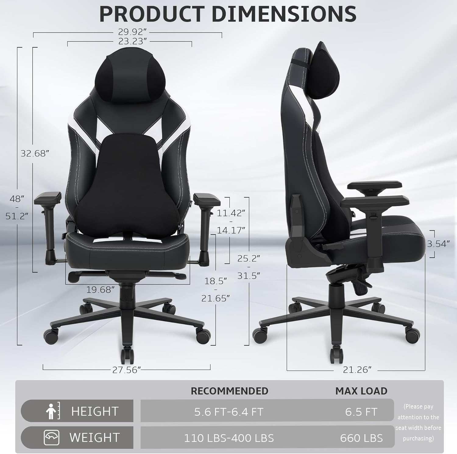 - 【Easy Assembly & After-Sales】Our office gaming chair without footrest is easy to assemble, with a detailed manual and all necessary hardware/tools included. Backed by 24/7 customer support, 30-day free replacement/refund, and a 1-year warranty on gaming chair parts for a hassle-free shopping experience. Feel free to contact us with any questions or suggestions