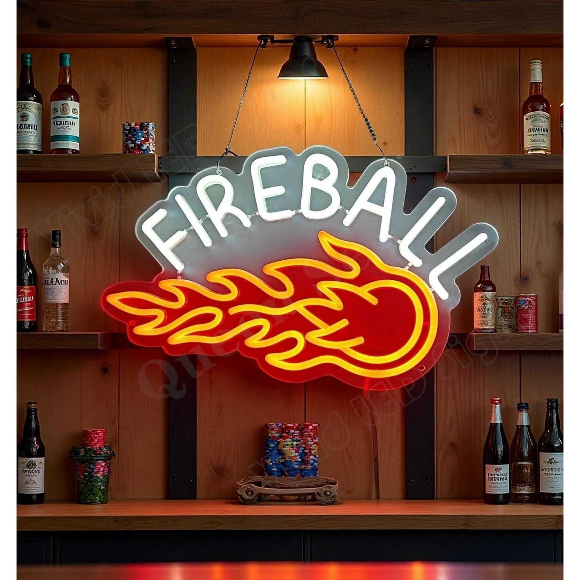 Fireball Whiskey LED Neon Sign, USB Powered Plastic Light for Bar, Man Cave