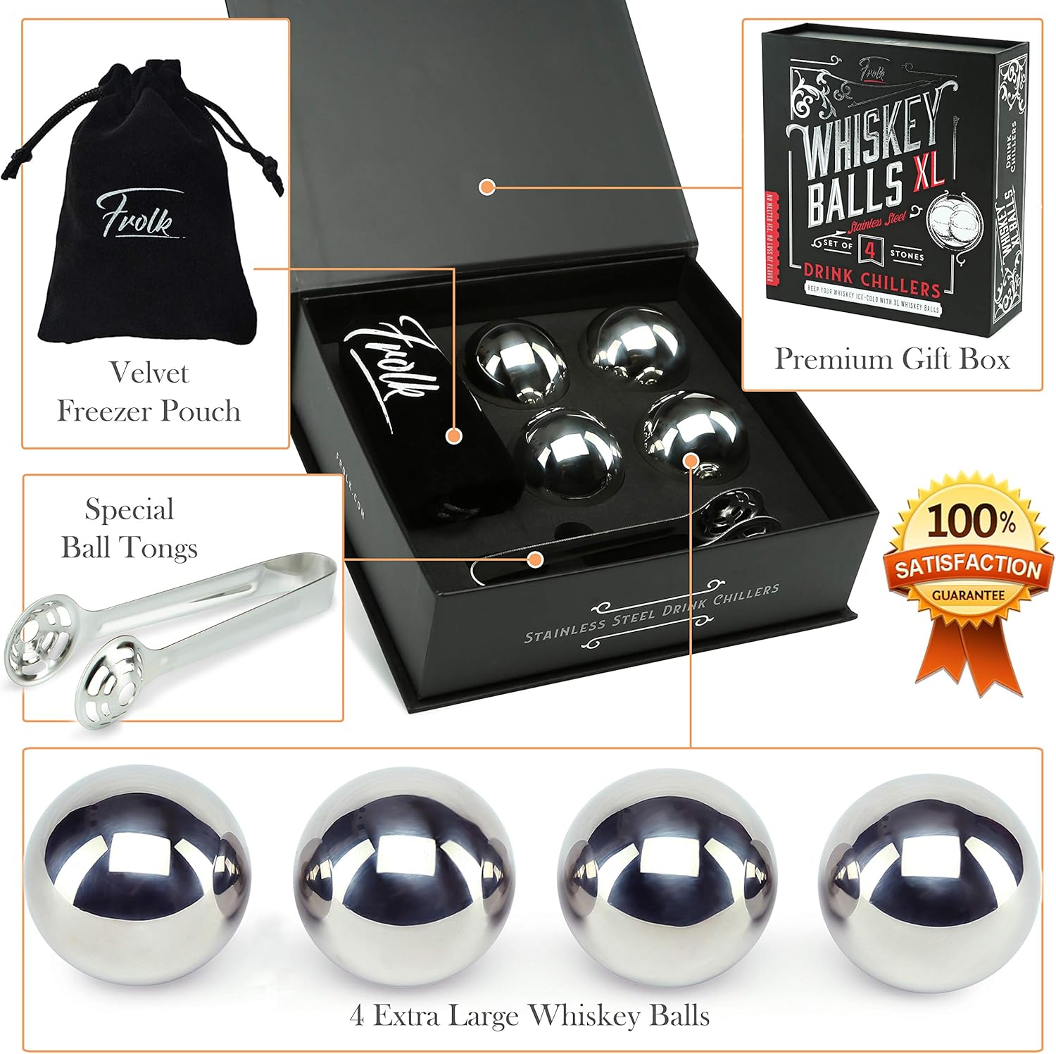 - Superior Whiskey Tasting with XL Chilling Balls: Elevate your whiskey experience with our Stainless Steel XL Stones. They cool your favorite drinks effectively, ensuring no dilution and preserving the full flavor of your beverage.