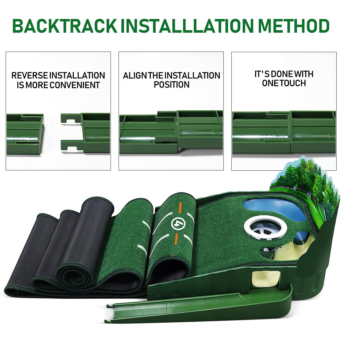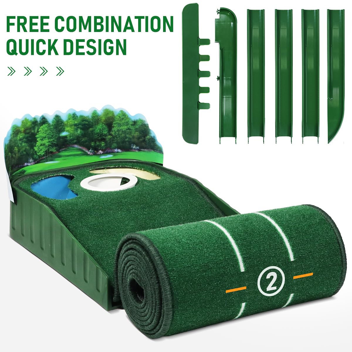 - Ingenious Design: Features an automatic ball return system and a 3D scene map removable baffle to help get the ball back on the mat after hitting,and has a measuring scale and double aiming line And a measuring scale and double sight line help improve your putting accuracy and enhance the precision of every shot
