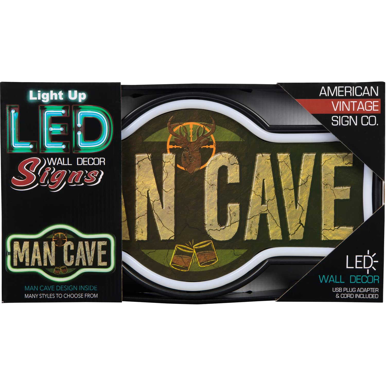 • LED NEON SIGN – Features electric LED tubing that frames the print design and gives the eye-catching appearance of real neon.