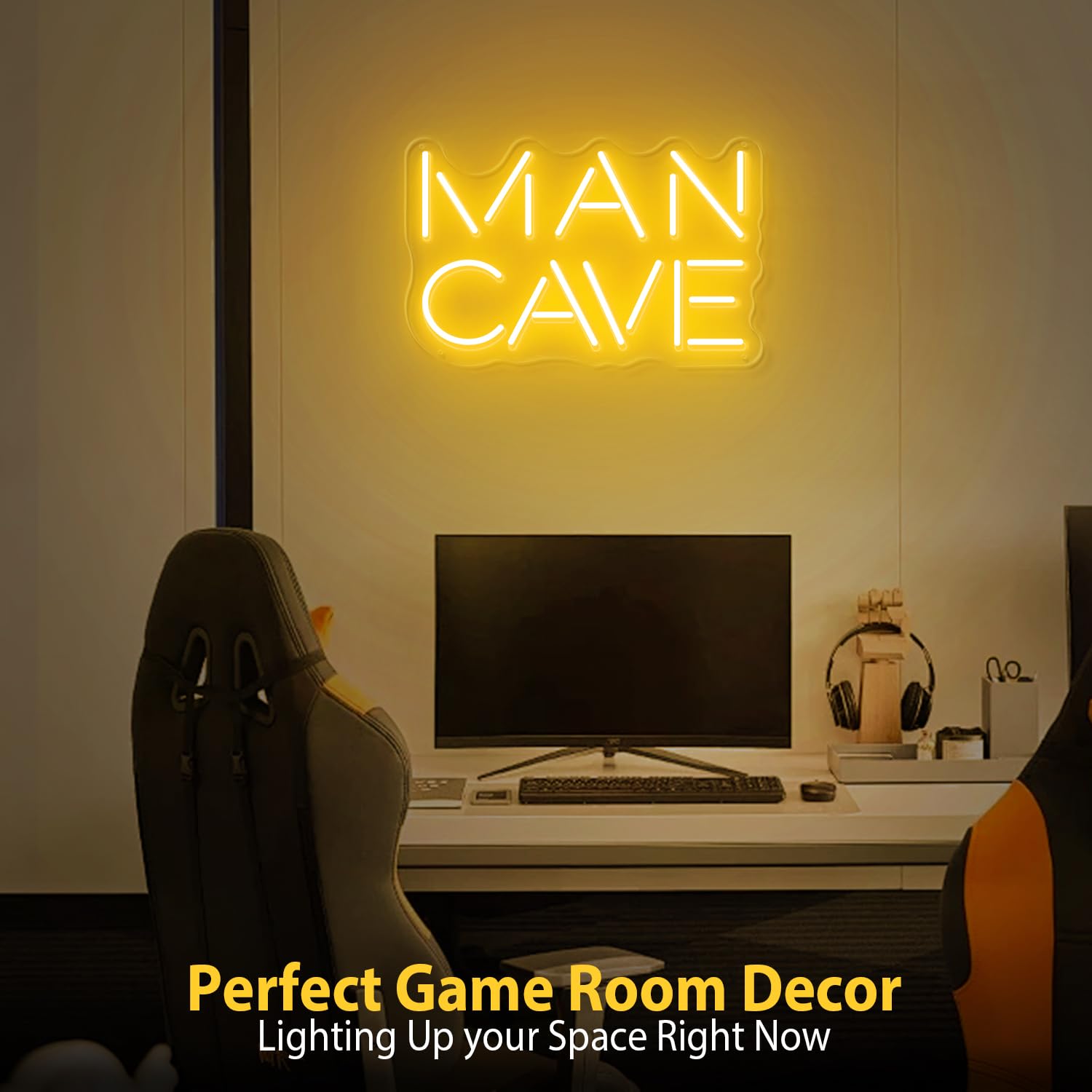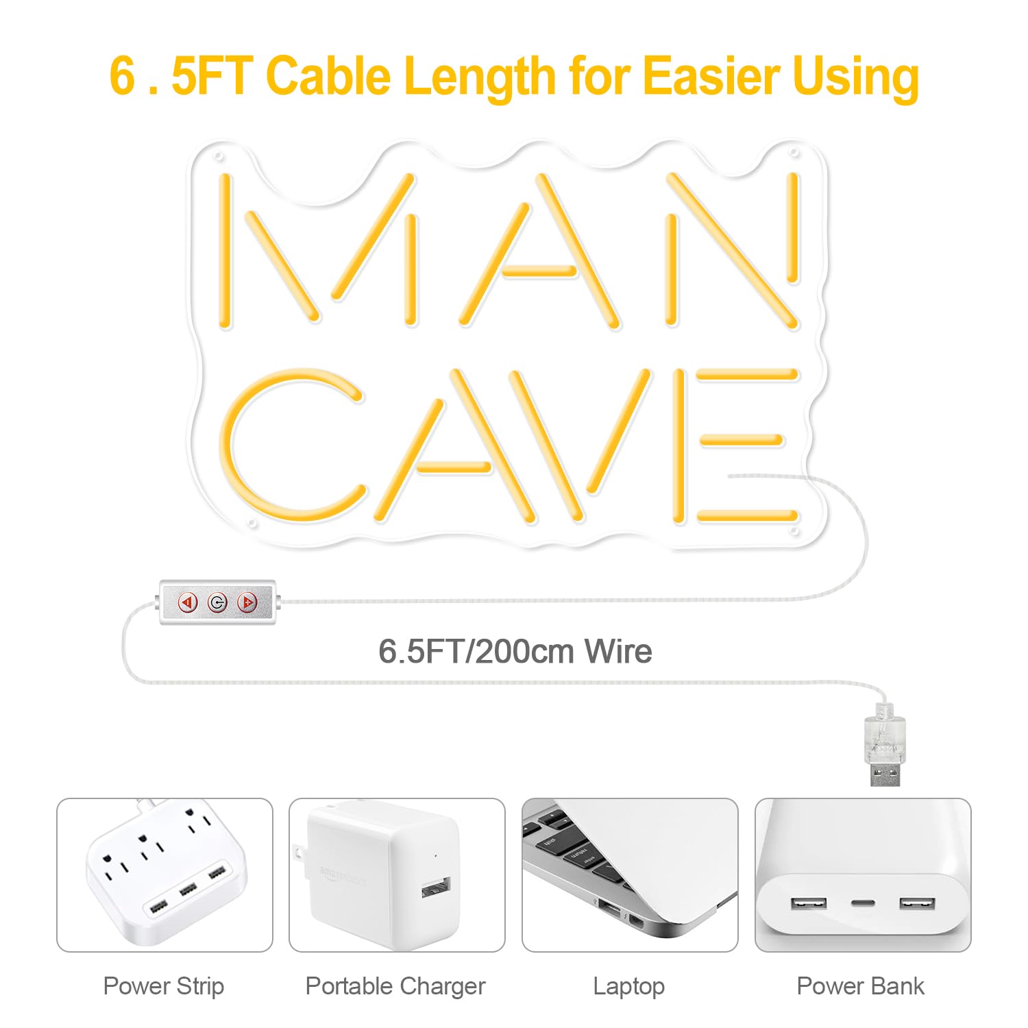 Details: Brilliant Man Cave Neon Sign: This bright man cave neon sign is high quality and well made. The upgraded 3.0 led neon light will create vibrant and eye-catching ambiance that is truly remarkable. The popular golden yellow light of the man cave sign is good to create a good vibe. The size of the wall decor sign is 14*9 inches, which is big enough for you to decorate your man cave, room, garage and so on.