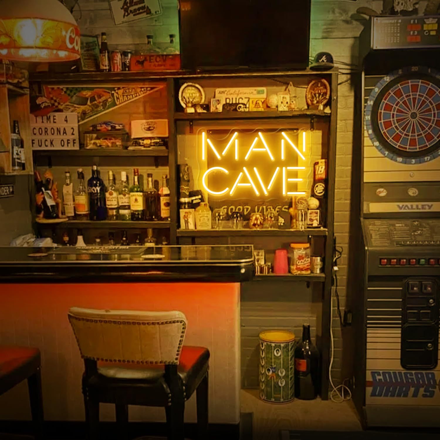 - Brilliant Man Cave Light Sign: This bright neon sign for man cave is high quality and well made. The upgraded 3.0 led neon light will create vibrant and eye-catching ambiance that is truly remarkable. The popular golden yellow light of the man cave sign is good to create a good vibe. The size of the mancave light sign is 14×9 inches, which is big enough for you to decorate your man cave, game room, home bar, garage and so on. And it will be the best fathers day gifts for dad.