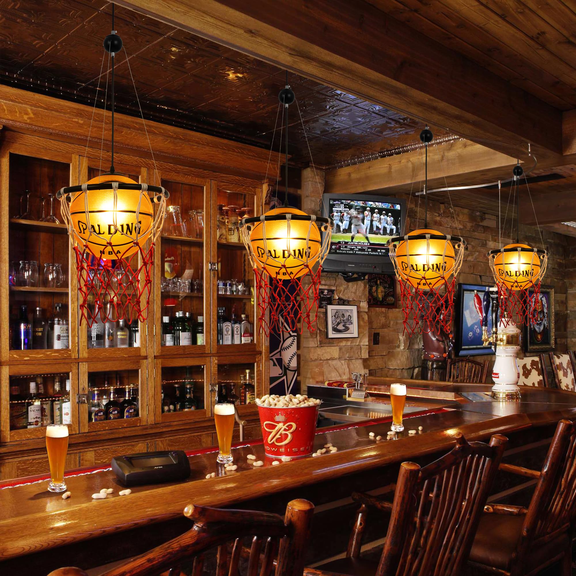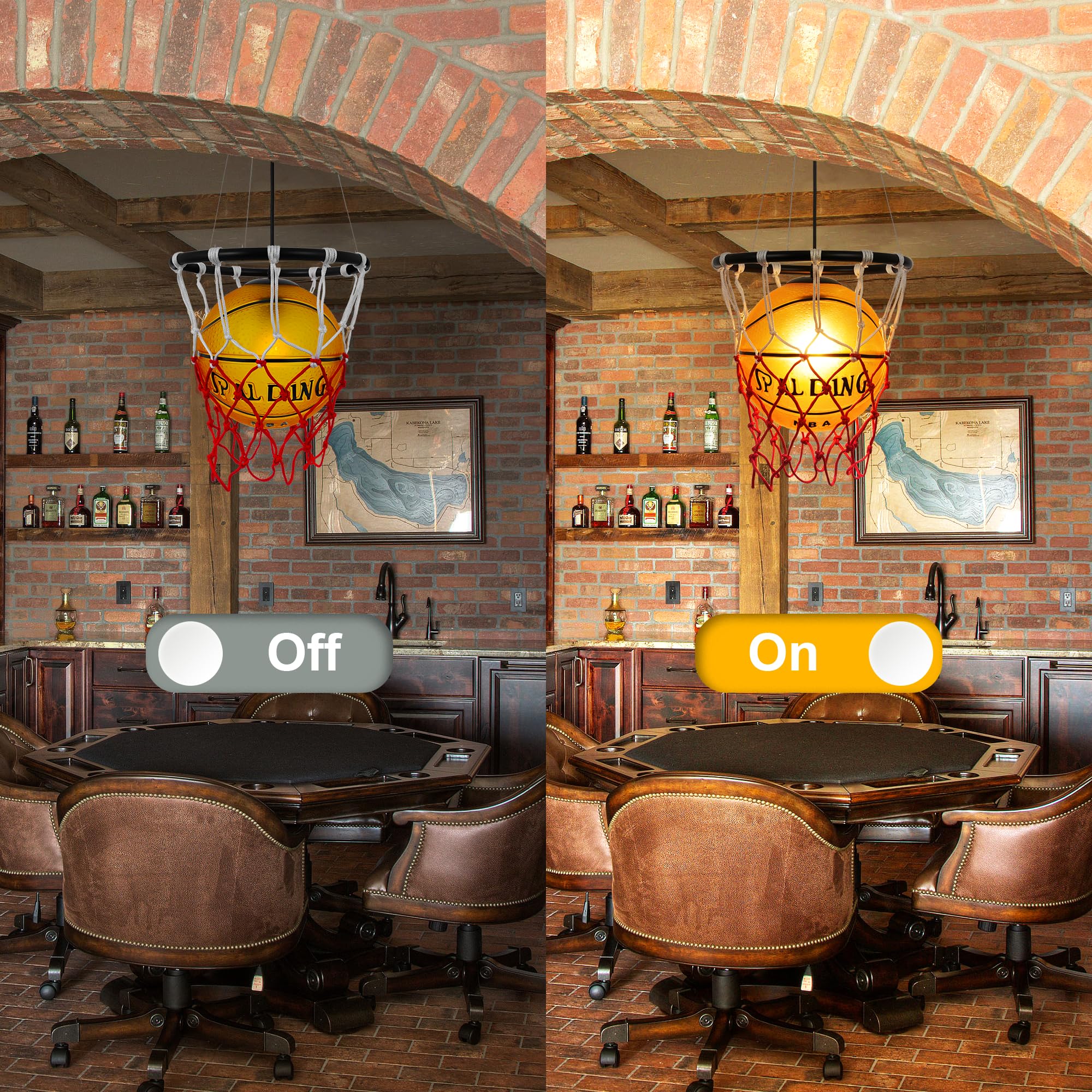 • 【Creative Basketball Chandelier】 Sports themed basketball pendant light, with realistic basketballs and baskets, hand stamped and painted prints, definitely decors your space cooler and more fun.