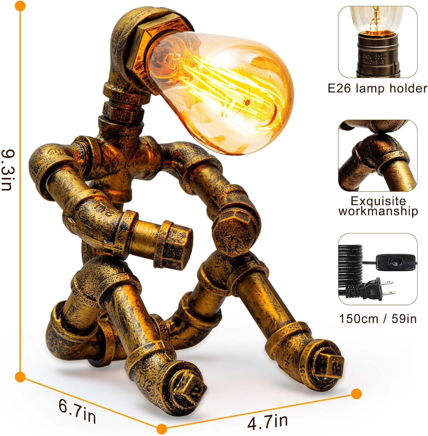 - 【Material】★☆Iron robot lamp, water pipe table lamp are made of exquisite iron piping, it is strong and corrosion-resistant; The lamp arm of the robot desk lamp is leisurely adjustable and can be tuned to your favorite style. Art-inspired with a modern look and superb craftsmanship. It reflects a strong retro metal industrial style!