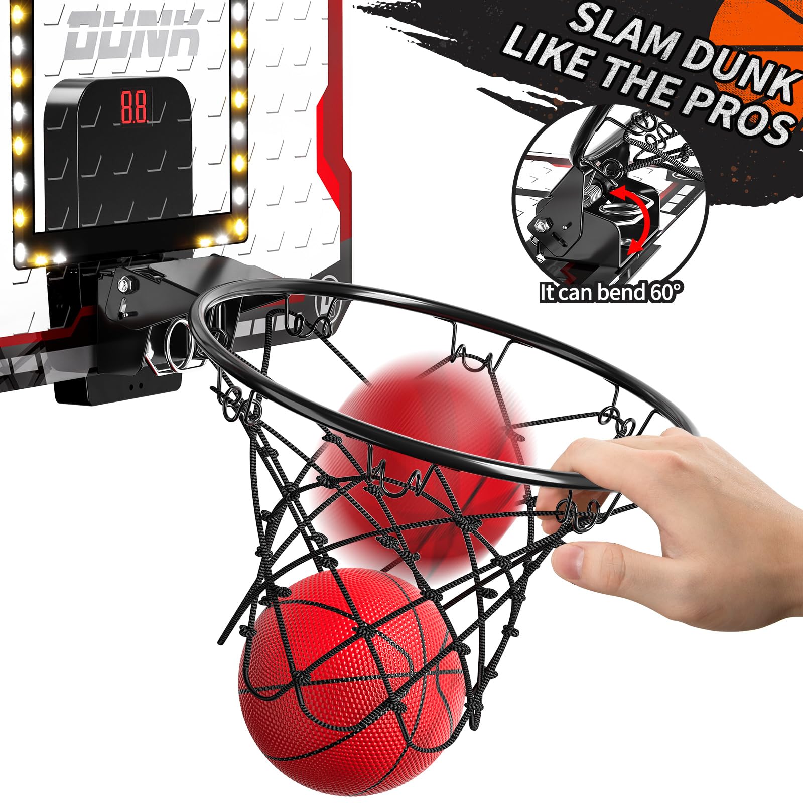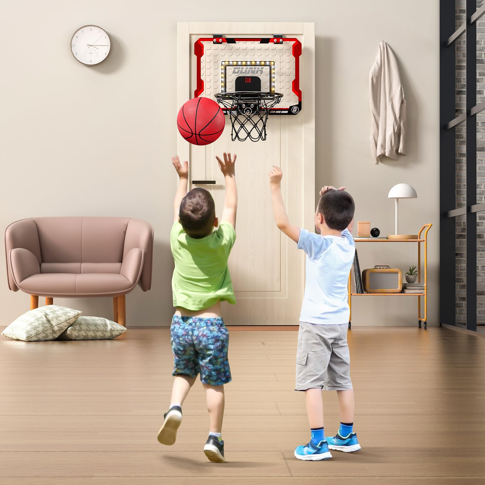 TEMI Basketball Hoop Indoor, LED Light Mini Basketball Hoop with 4 Balls & Electronic Scoreboard, Over The Door Basketball Hoop, Basketball Gifts for 5 6 7 8 9 10 11 12 Year Old Boys Girls Kids Teen