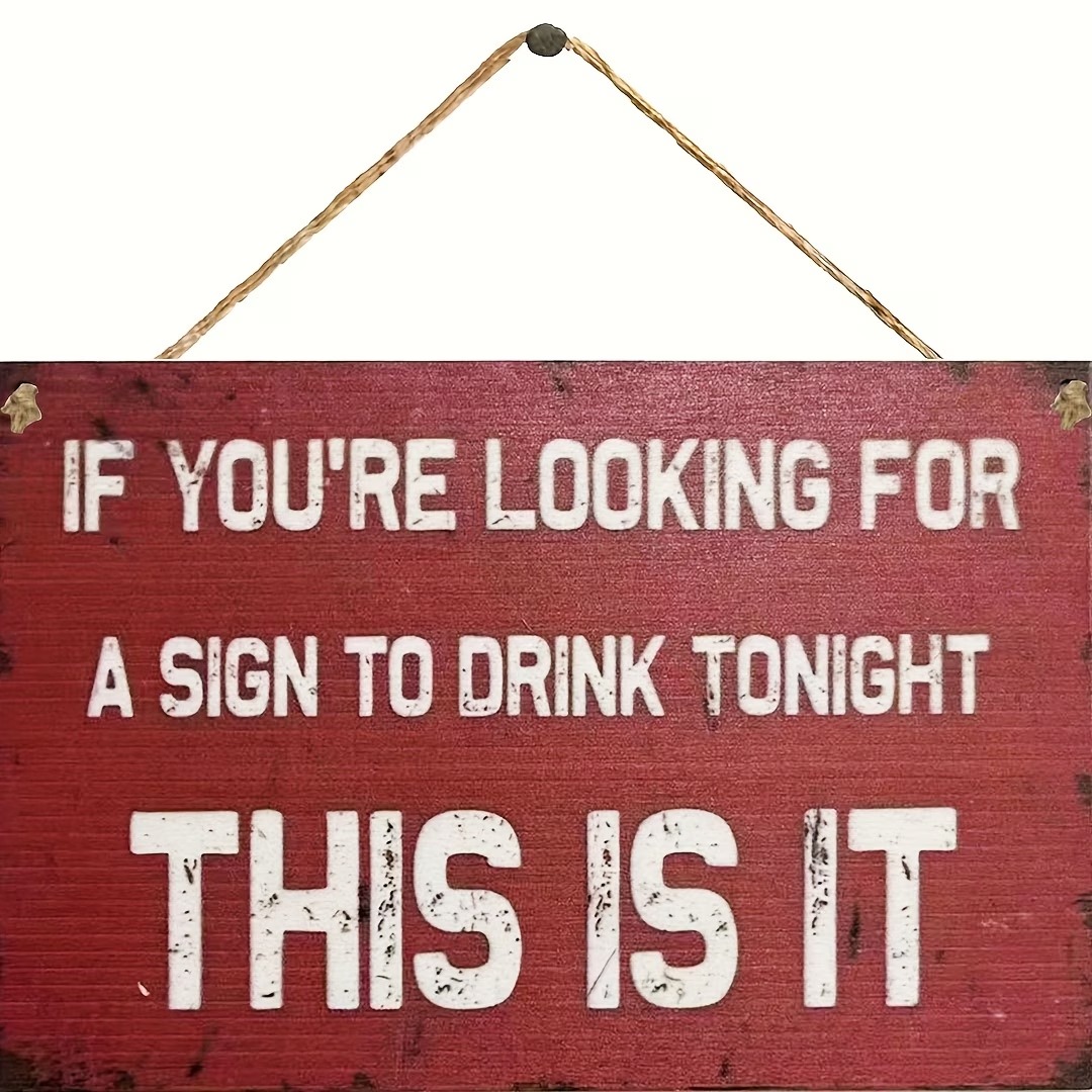 Vintage ‘If You’re Looking for a Drink Tonight, This Is It’ Wooden Sign with Hanging Rope – Perfect for Home Bar, Cafe & Garage Decor