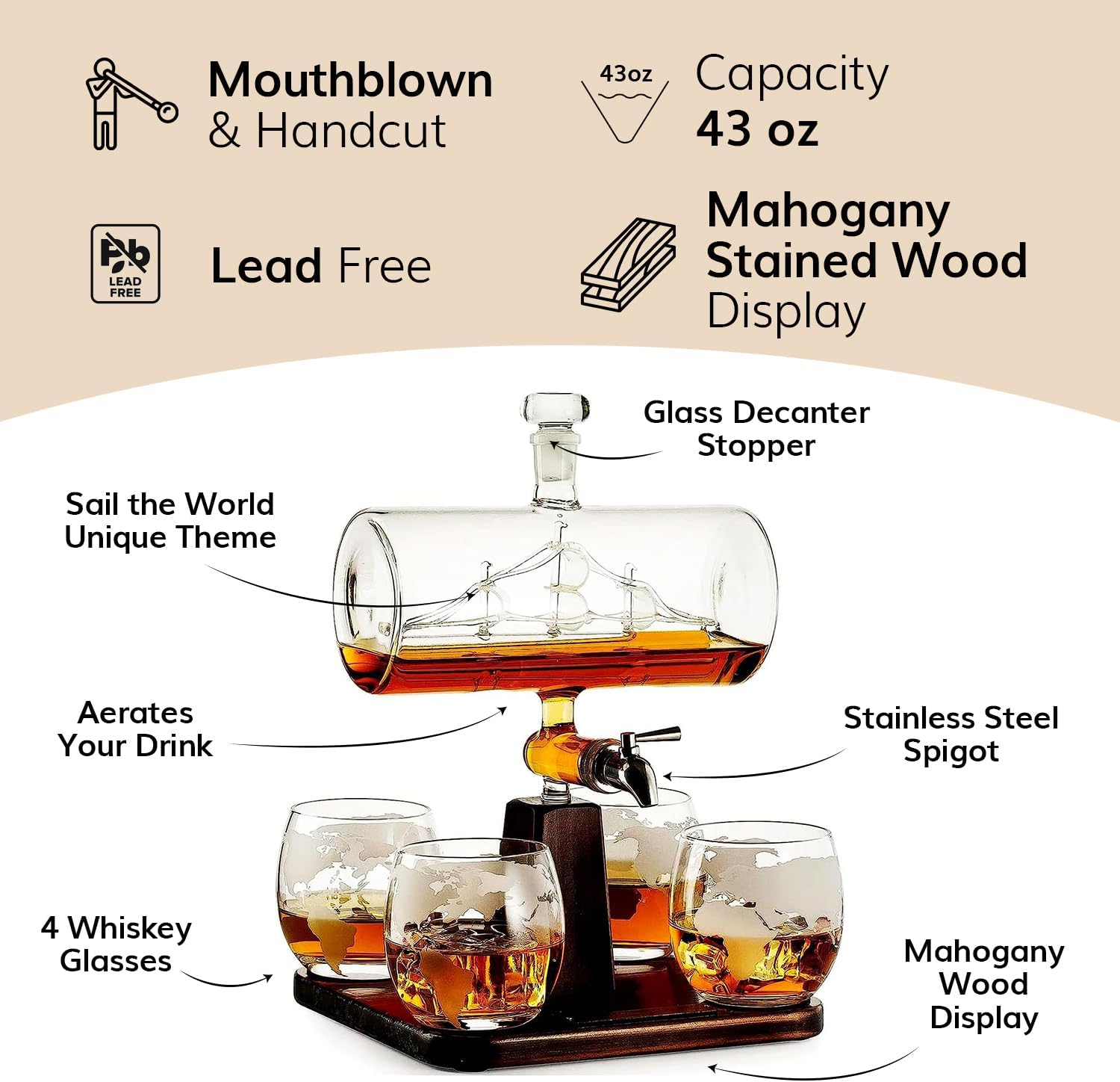 - SAIL WITH STYLE: Embrace the spirit of adventure with this beautiful ship decanter, perfect for serving whiskey or other spirits. Its classic design adds a touch of the high seas to any table or bar, making it a standout piece for any gathering.